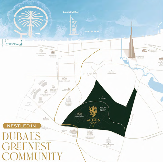 Perfectly located next to Al Barari, Dubai’s greenest community, Vincitore Wellness Estate sits in Majan, a rapidly rising district packed with investment potential.